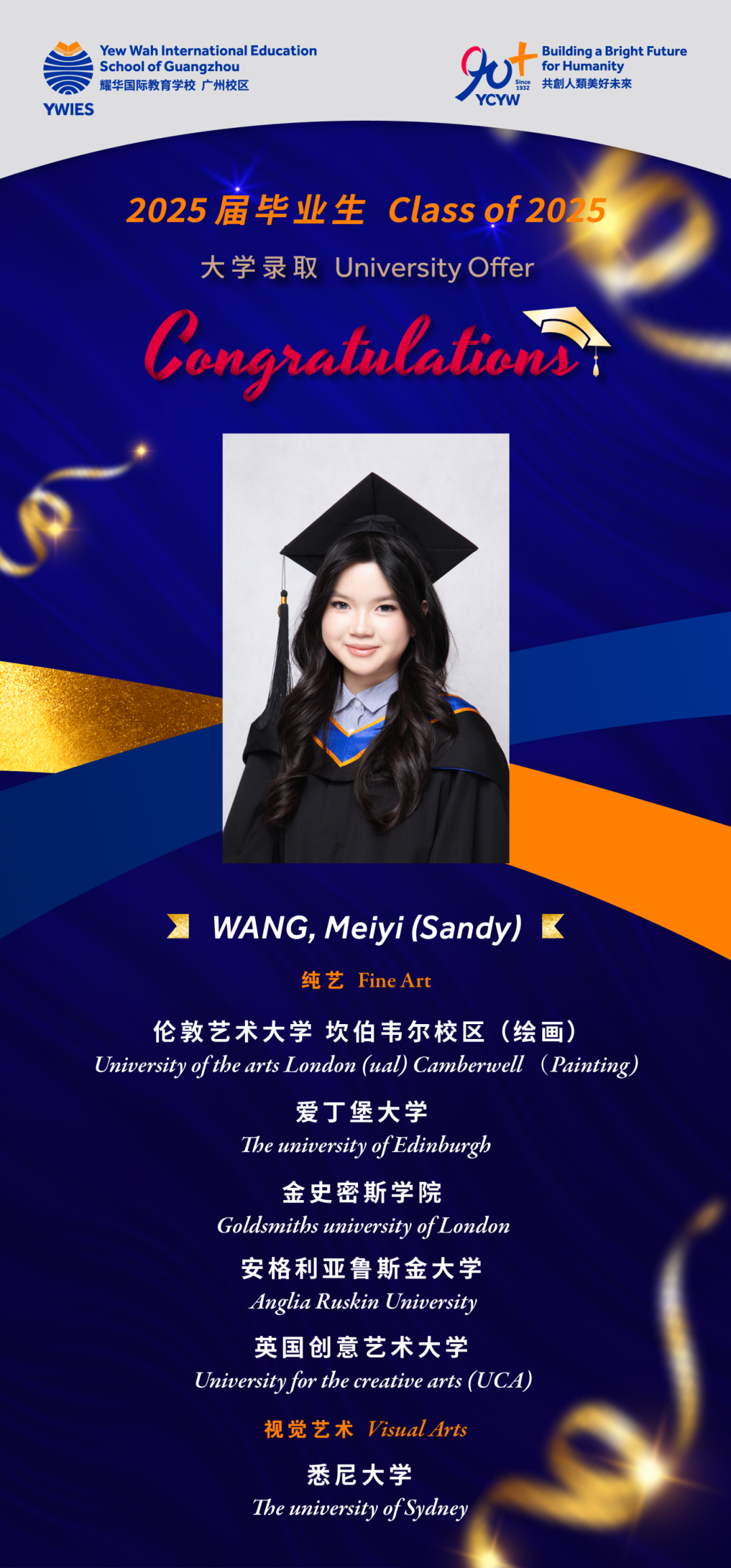 “今天是我在耀华学习的第3904天。”当Sandy说出这句话时,语气中满是感慨与眷恋。作为广州耀华的创校生,十年有余的时光,Sandy超过一半的生命都浸润在艺术的氤氲气息里。