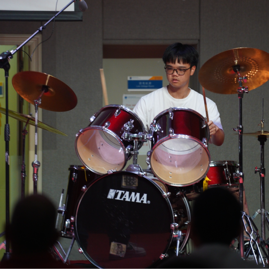 *宿舍年终晚会上表演架子鼓的Hansen*