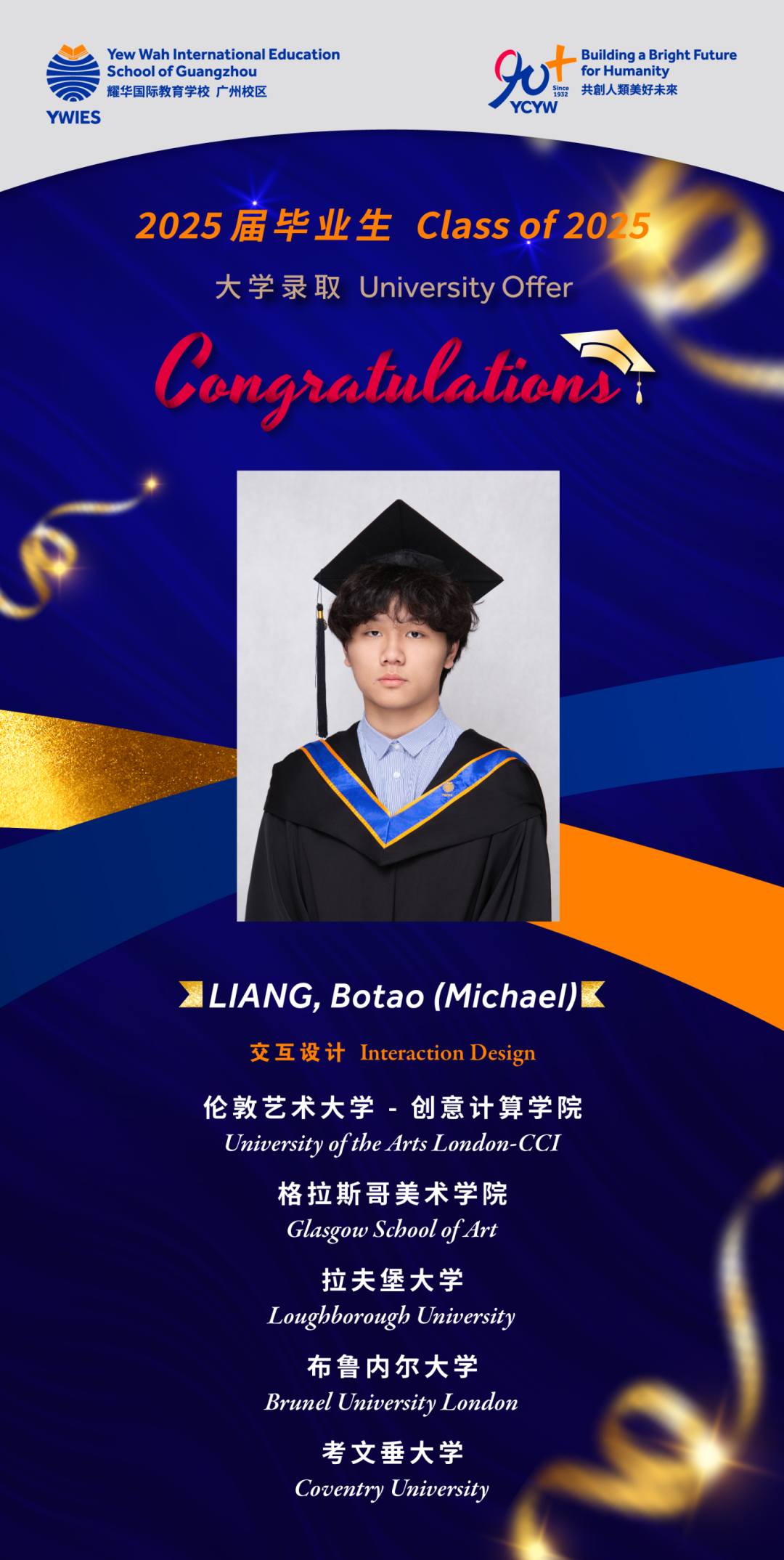 Michael选择交互设计专业并非偶然。在耀华接触美术科目后,他便被这个工业设计领域深深吸引。“这个专业能让我把脑海中的创意点子转化为实用的设计作品,太有意义了。”