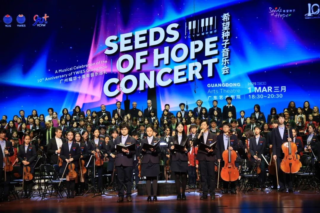 3月1日晚,2025年希望种子音乐会在广州奏响。广州耀华100余名师生,与来自香港、北京、上海、重庆、台、青岛、桐乡耀华联合的师生、校长、校友军团代表共1000余人、参与凉山彝族自治州的12名学生,在这个春光融融的季节齐聚花城,以串串为后续,播下愿望、希望和爱的种子。