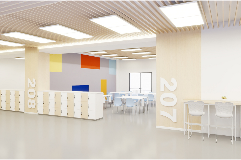即将在秋季投入使用的二期项目在暑期进入如火如荼的软装阶段。13000平方米的中学教学楼康复开放式的设计,为新学期带来更多灵活可变的空间,旨在营造一个由师生主导的共享学习社区,为多媒体化、标准化、国际化的教育发展提供硬件。