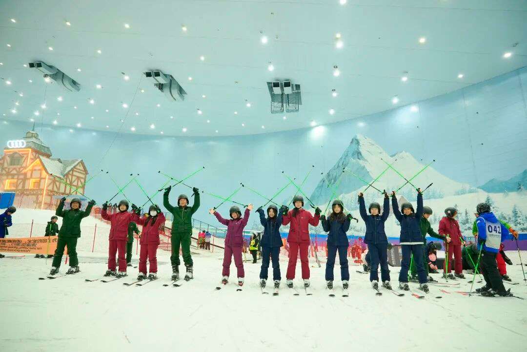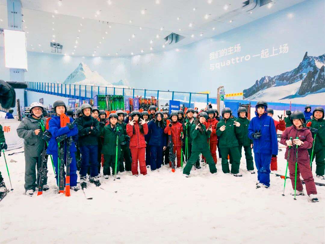 行程第四天,香港耀中的师生们怀着期待的心情,走进了华南地区最大的室内雪场——融创热雪奇迹。对于许多常年生活在亚热带气候的同学们而言,迈入雪场大门的一刻,仿佛踏入了一个神奇的冰雪结界。在专业教练的耐心指导下,同学们从笨拙地穿戴雪鞋、雪板开始,一步步认真地学习滑雪。这场沉浸式的冰雪研学,给同学们带来了难以忘怀的宝贵经历。