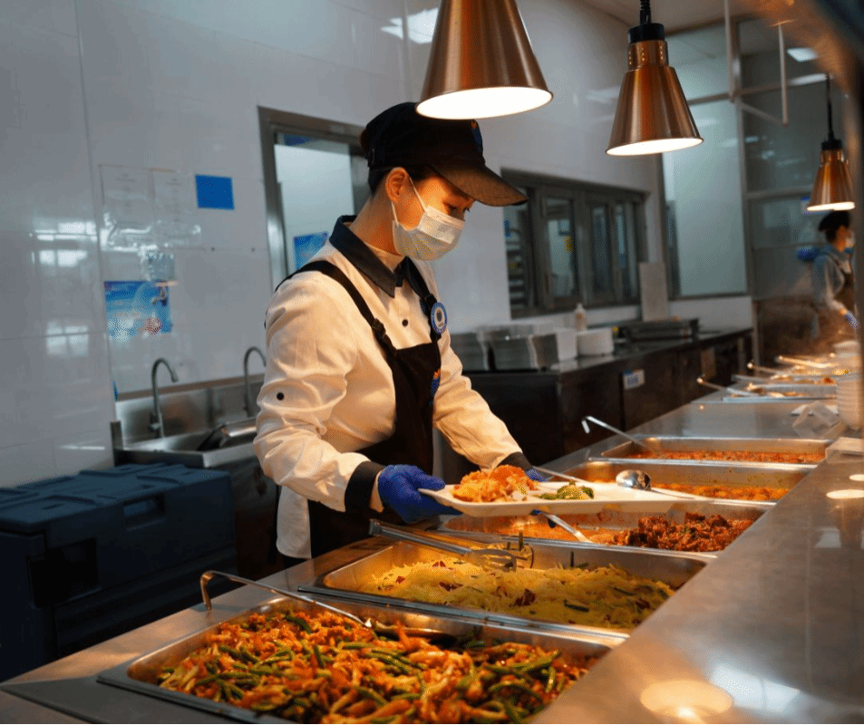 中午时分,餐厅准备了丰富多样的自助餐——中式热菜香气扑鼻,西点心精致可口,新鲜水果琳琅满目,满足了不同的饮食需求。师生们可以自由选择自己喜欢的食物,享受美食带来的愉悦。自助餐不仅丰富了师生的午餐选择,也体现了学校对师生生活道德的重视和关怀。