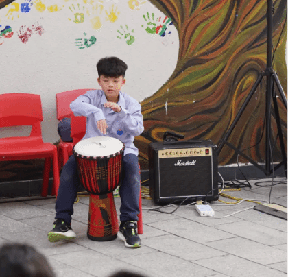 艺术是最常见的一种体现人与人之间个性与差异的方式,所以它同时也是一种锻炼合作与包容的情境。除了大课间,学生们在CCA (Co-curricular activities)课程里也有充分的探索自由,组成小型的音乐团体,碰撞出不一样的可能。音乐老师们则在这个过程中提供适时的技术援助。
