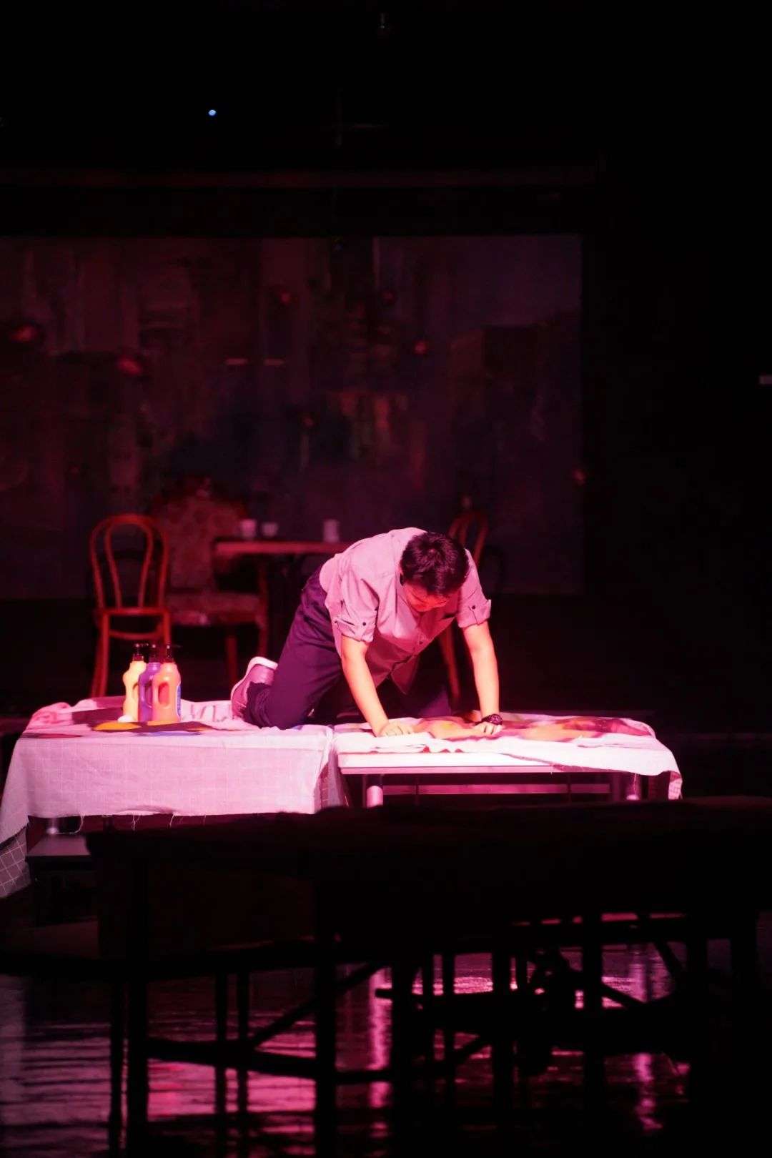 「在那之前我一直都是个演员,当了导演才知道这和平时做学术作业的leader是不一样的。因为这个时候你就不能只是分配工作了,你必须要听到大家不同的想法。戏剧是很主观的东西,每个人对自己的角色都有一套解读,而导演需要统一大家的解读,把他们互相翻译给对方听,确保每个人演的时候能够顺畅沟通。」
