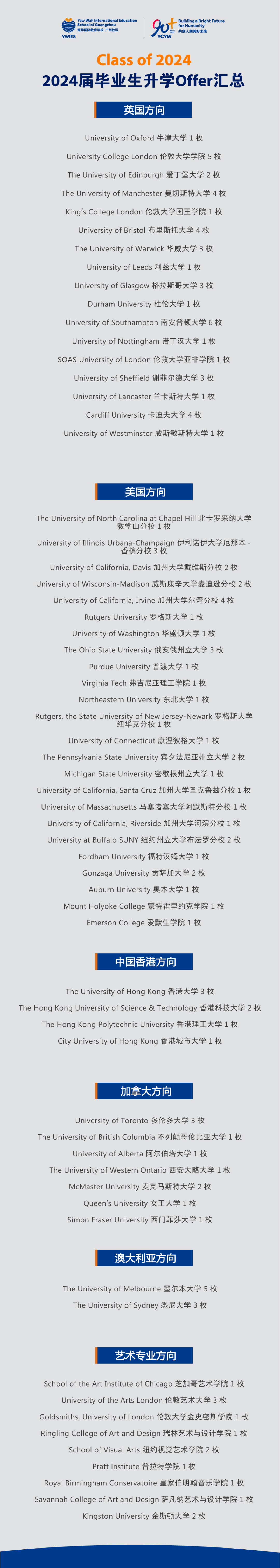2024届毕业班共收到了139份世界各地顶尖大学的录取通知和价值近400万元人民币的奖学金。
