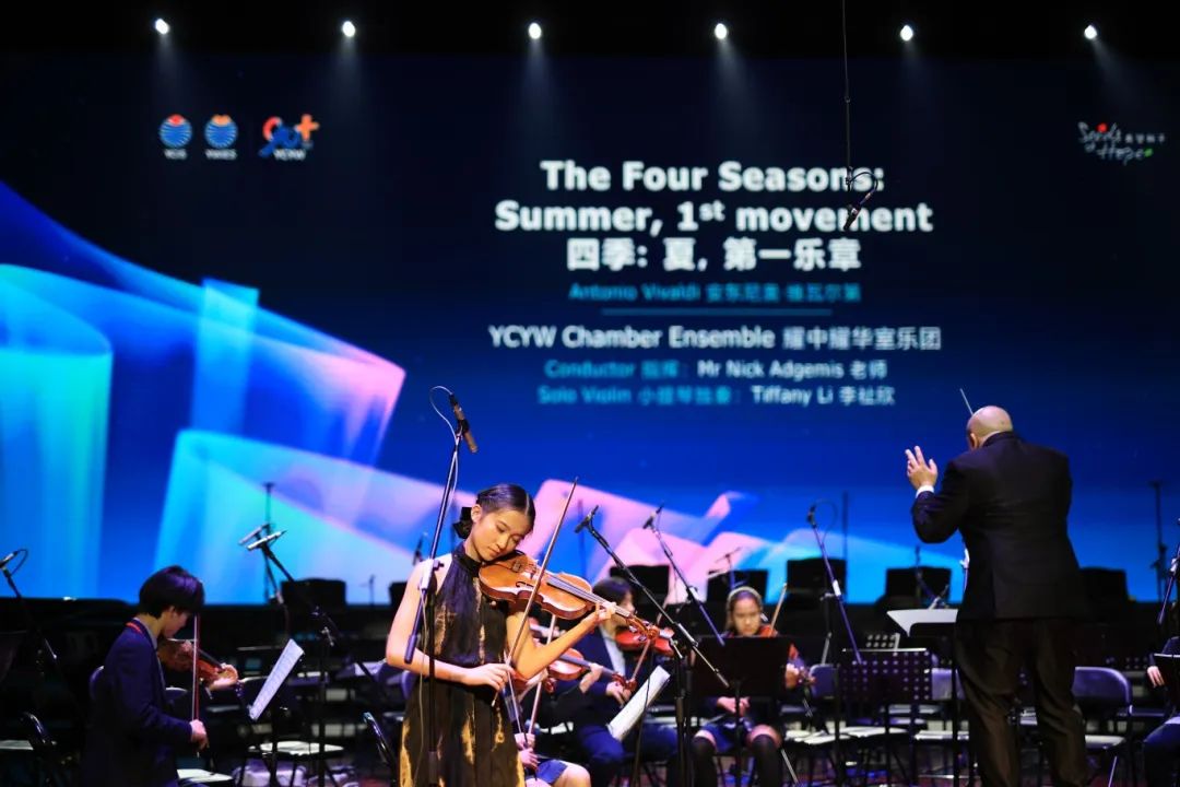 今年希望种子的舞台,就是中西文化交融的一场盛宴——经典的《四季:夏》第一乐章、古筝与西洋乐器合奏的《凤阳花鼓》、童声演绎的彝族歌曲《不要怕》、胡琴演奏家与乐团合作的《战马奔腾》、音乐与舞蹈结合的《La La Land》、本土特色的粤语歌曲《彩云追月》……多元的节目背后,是音乐教育边界的不断拓展,更是耀中耀华社区对多元文化的包容与尊重。